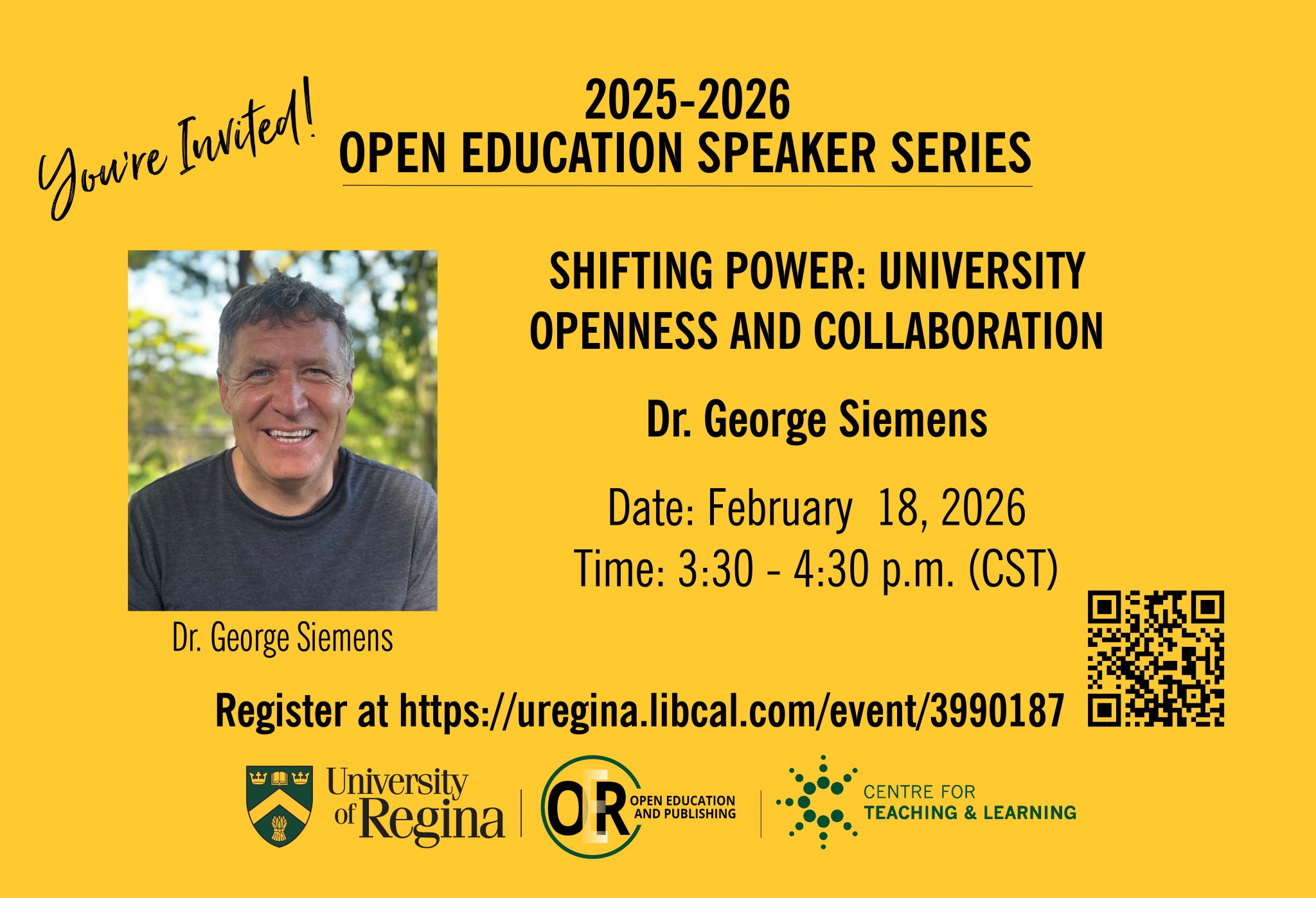 Please join the University of Regina for an Open Education Speaker Series online presentation with Dr. George Siemens, University of South Australia/ University of Texas (Arlington) Session Description: Universities have […]