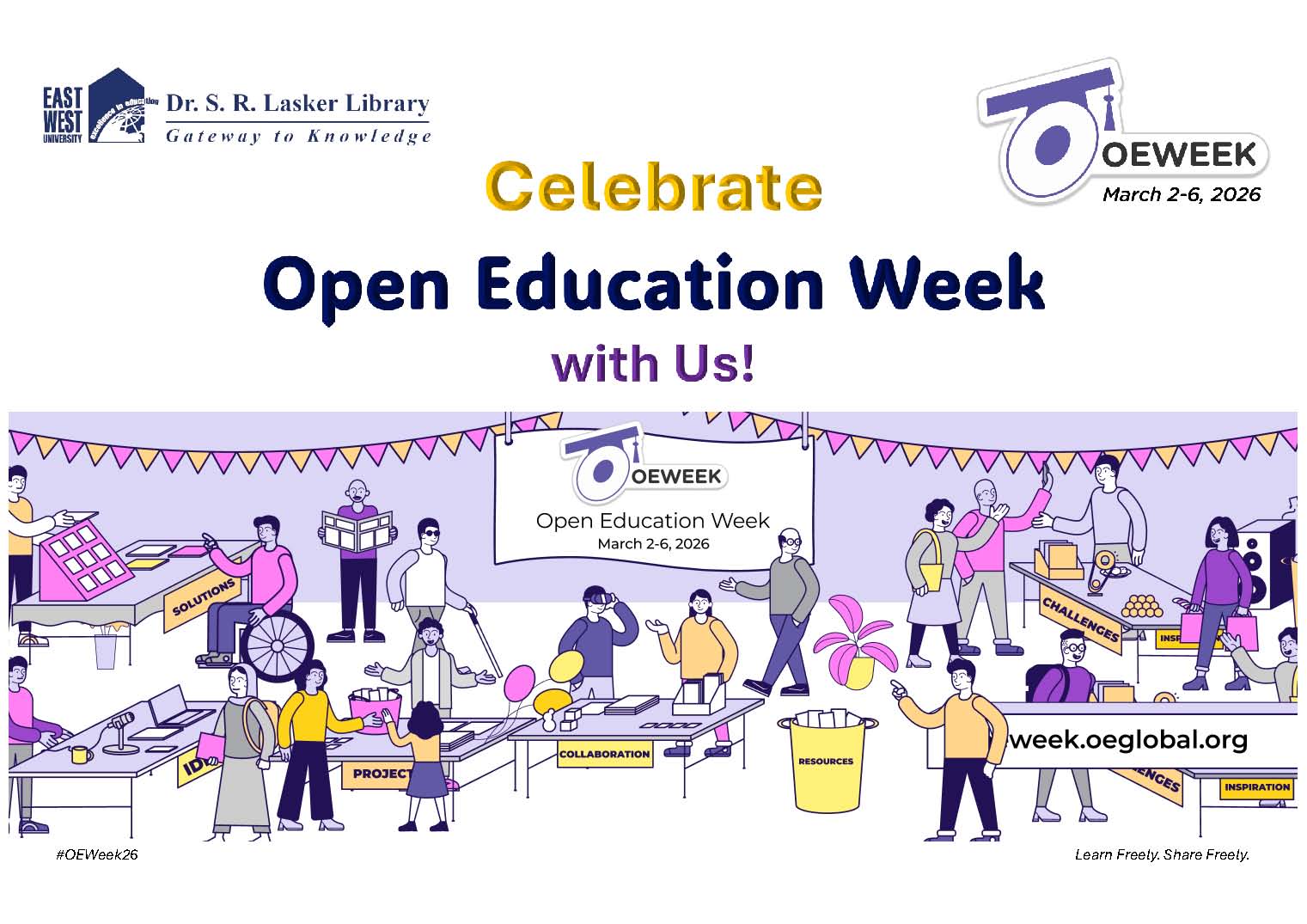 The Dr. S. R. Lasker Library, East West University, celebrated Open Education Week in 2026, from March 2 to March 5. The Library engaged with the EWU community both online and offline to promote important concepts related to open education. Each year, the Library observes this global event with initiatives that actively support open learning and the sharing of knowledge.