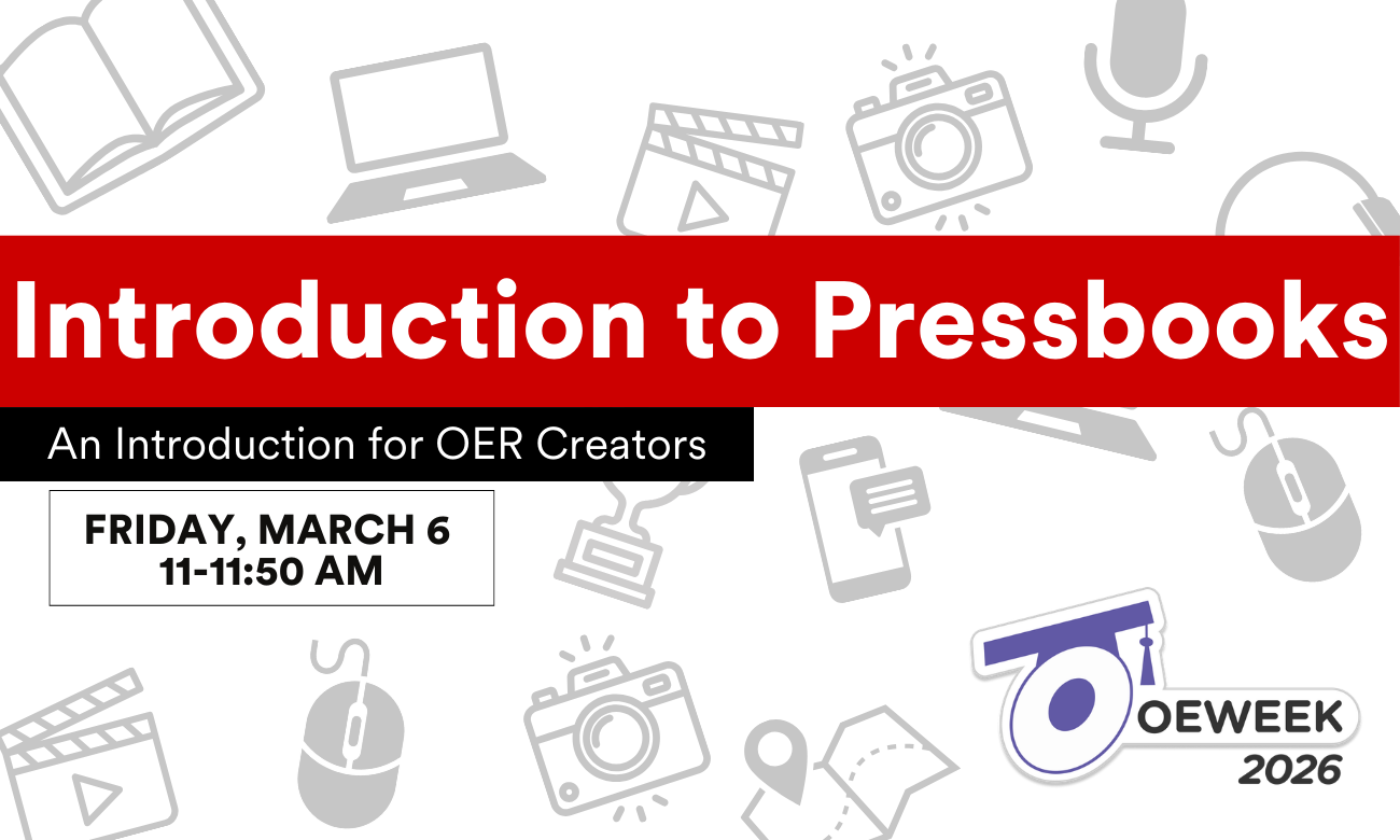 By the end of the workshop, you’ll have the knowledge and tools to begin creating and publishing your OER. No prior experience with Pressbooks is required.