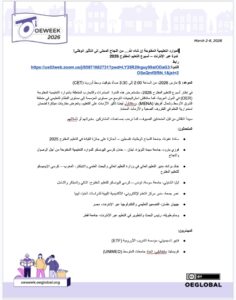 Celebrate Open Education Week 2026 by joining a high-level dialogue on transforming OER from isolated campus initiatives into a resilient national infrastructure across the Arabic-speaking world.