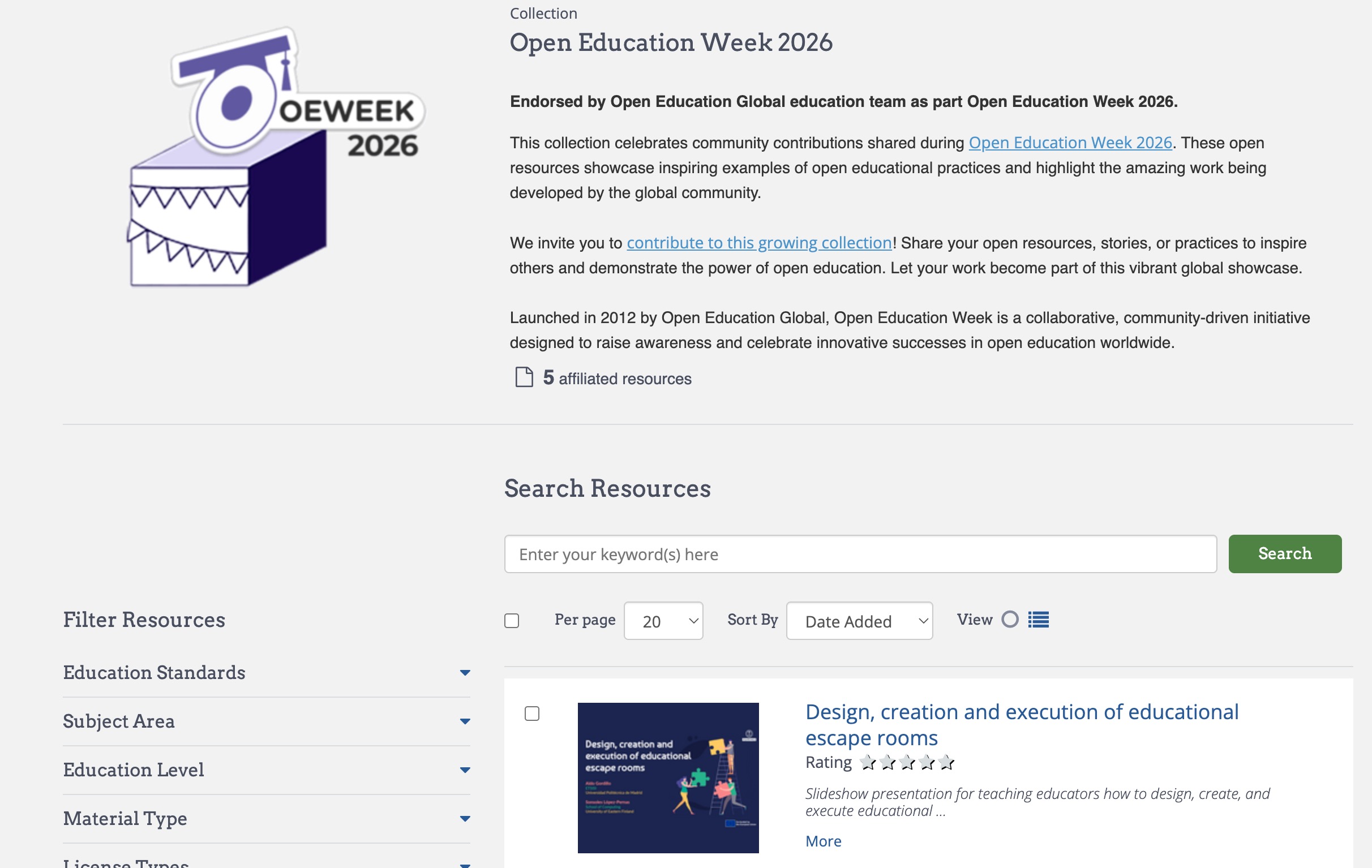 Start sharing now open assets / resources to make visible to the world for Open Education Week 2026.