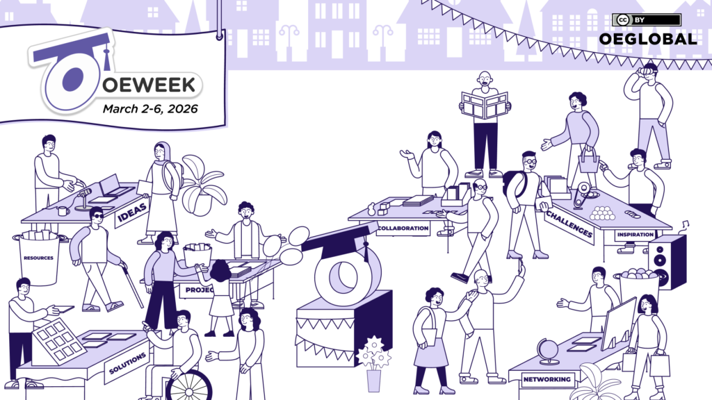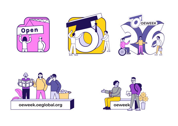 To help you celebrate OEWeek 2026, you can find below visual materials to adapt, use and share. All graphics are created by Mario Badilla at OEGlobal and are shared under a Creative Commons Attribution 4.0 International License.